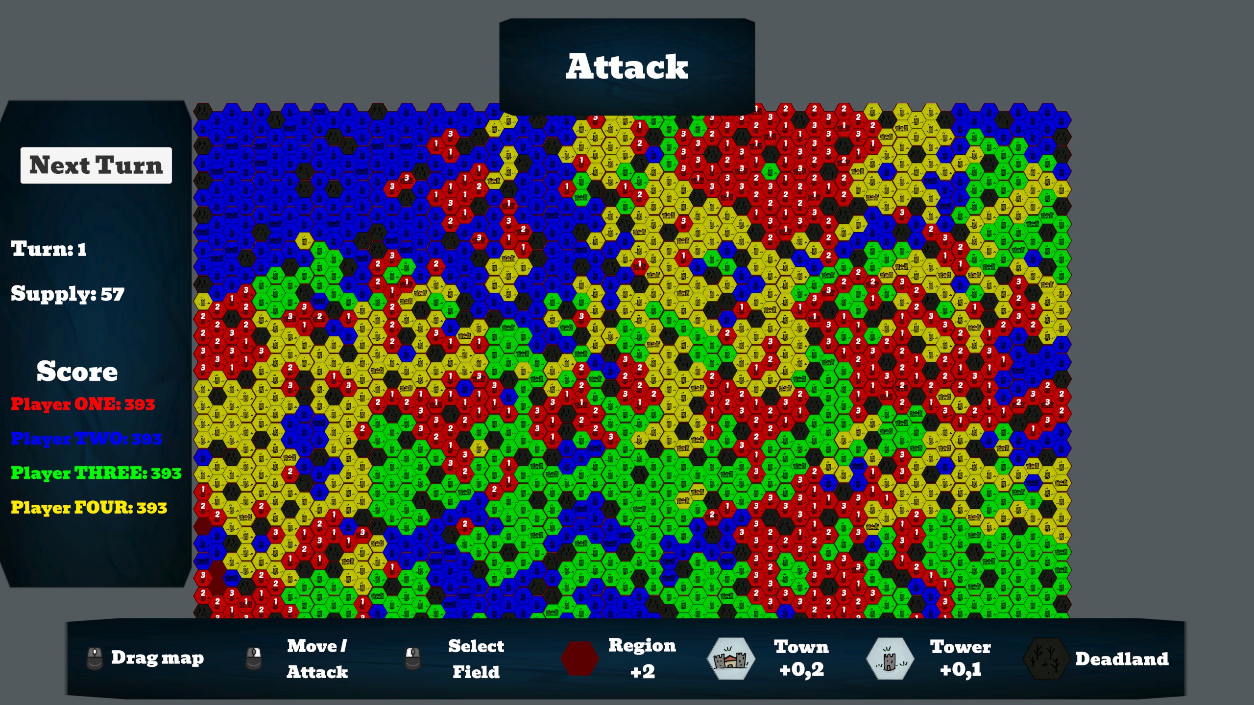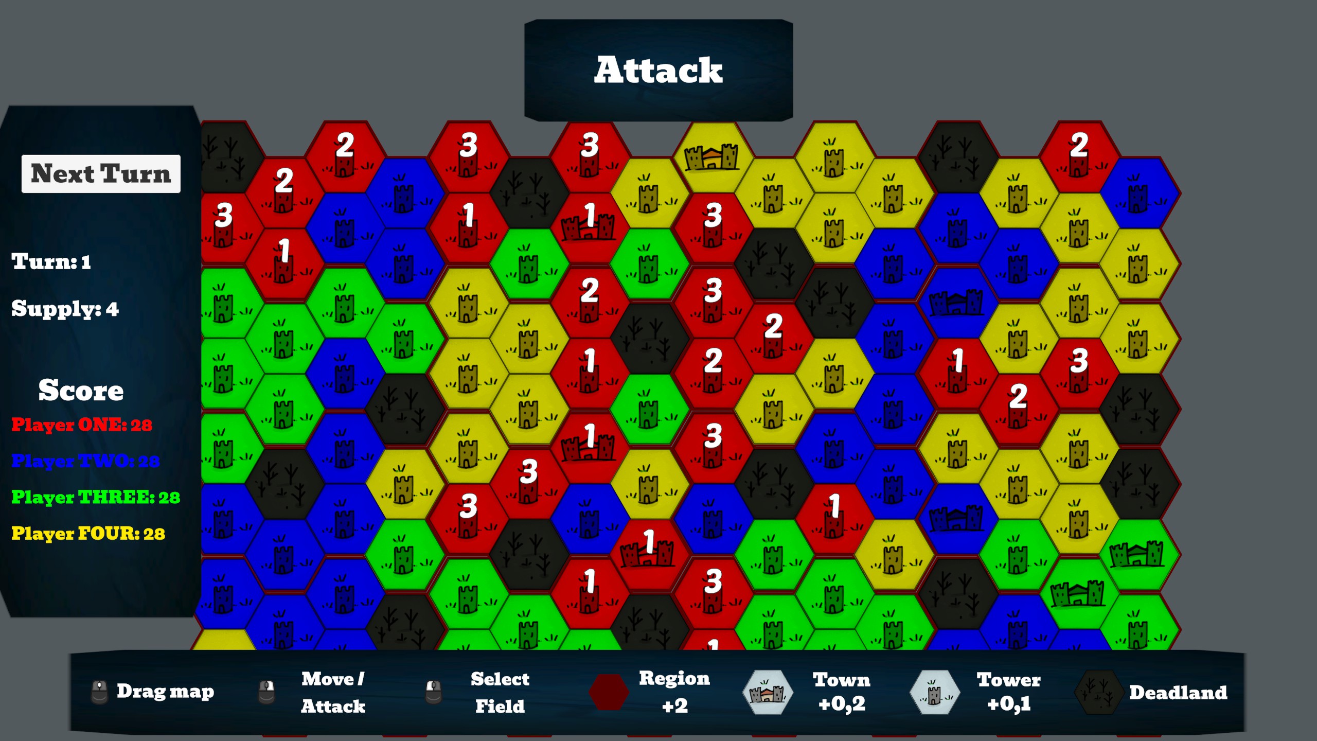 Empires at Risk ist ein einfaches Strategiespiel, in dem Sie eines von vier Imperien kontrollieren. Das Ziel ist es, die gesamte Karte zu beherrschen. Regionen und Stadtfelder sorgen für taktische Tiefe.